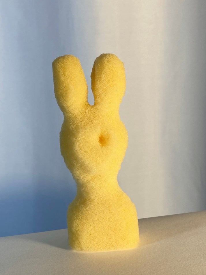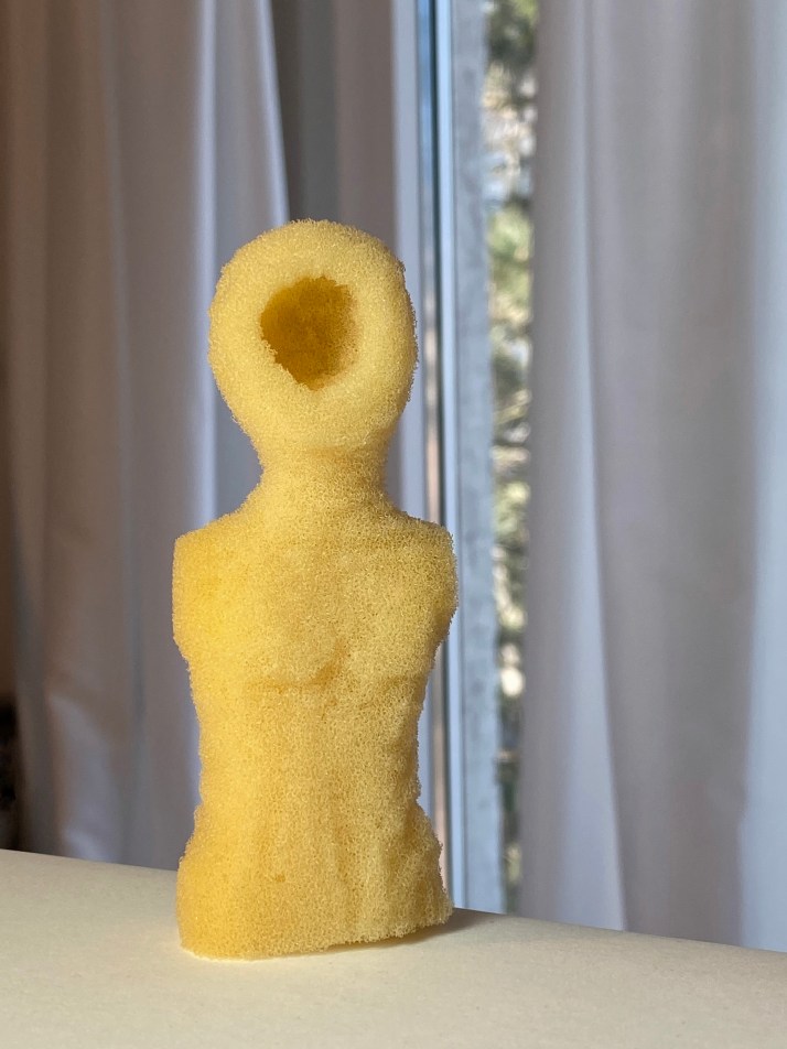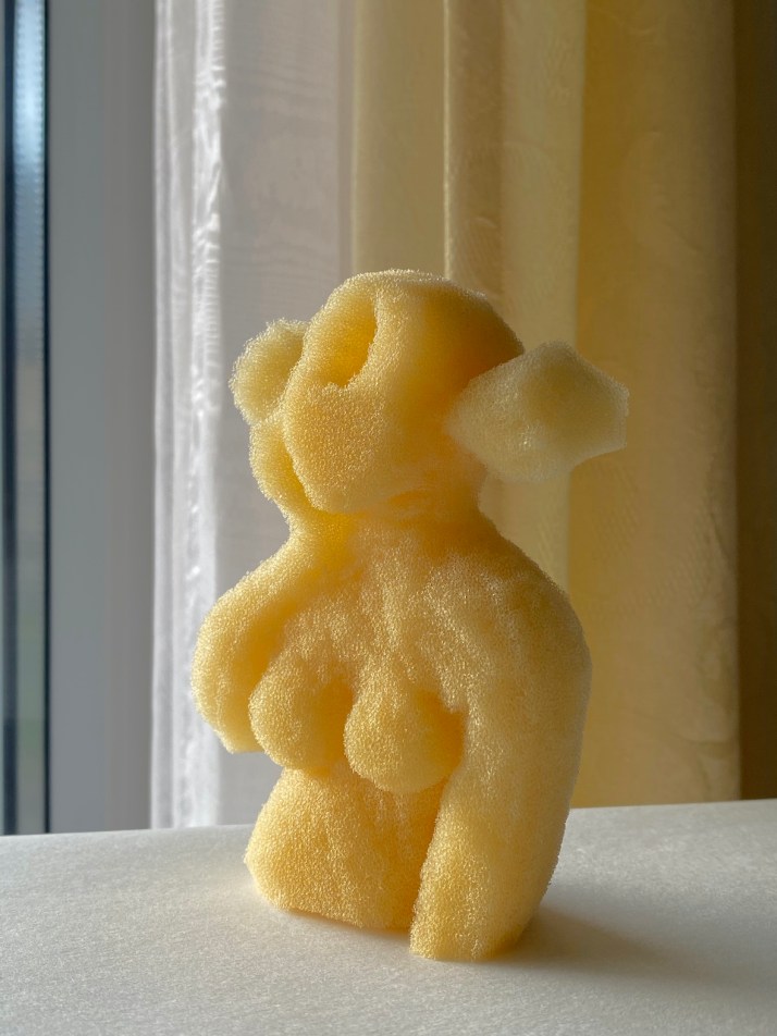 A series of photos of sponge figures carved with nail scissors during the months of COVID-19 restrictions. At home, those months were like an imposed isolation. And even if it was possible to work in home office, it felt like mutating into a virtual existence in which there were no longer any people, but beings staring into a void.